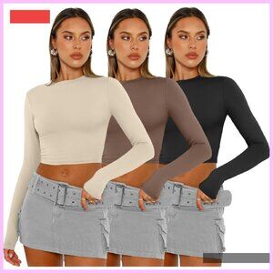 3 Pack Long Sleeve Crop Tops Slim Fitted Y2K Fashion Fall Outfits