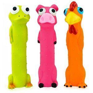 Brand new and in flawless condition — this fun 3-pack of squeaky dog toys delivers interactive play perfect for indoor fetch, outdoor fun, or keeping your pup entertained. The soft, non-toxic latex is durable and features a fun squeak sound for engaging play.