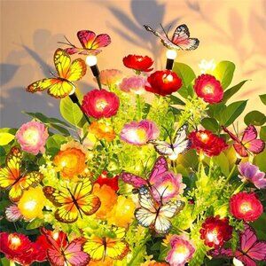 【Brighter & Longer-Lasting Illumination】- Unlike typical 12 or 15-LED solar lights, our solar flower lights feature 30 vibrant LEDs and glowing stems & leaves, much brighter than other solar butterfly lights. Solar flowers lights outdoor waterproof is powered by a high-quality 1.2V/600mAh Ni-MH rechargeable battery, those solar lights can illuminate your garden for up to 18 hours on a full charge - lasting much longer than standard outdoor solar lights.