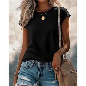 Features: casual women's t-shirts, crew neck blouse, solid color cap sleeve shirts, summer dressy tops, tank tops for women