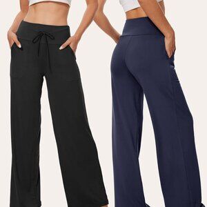 3 Pack Women's Wide Leg Pants with Pockets - Casual Loose Yoga Trouser Pants Swe