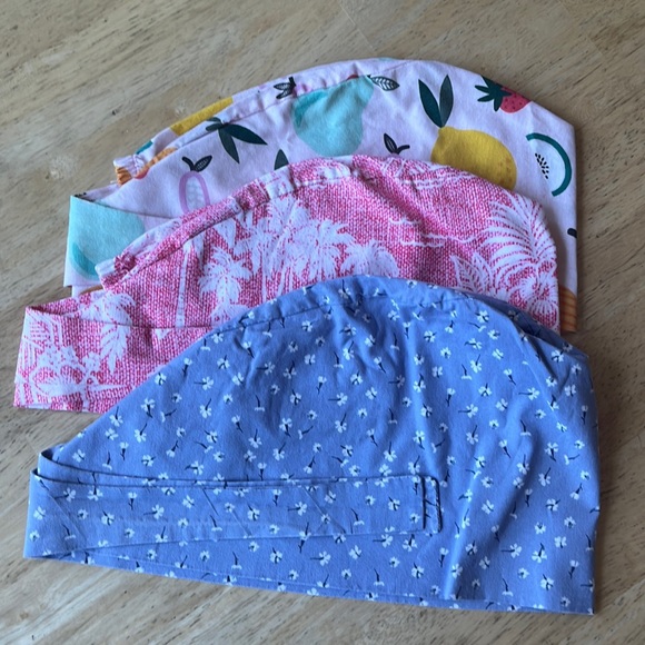 -Hawaiian and Fruit caps are Blue Sky Scrubs