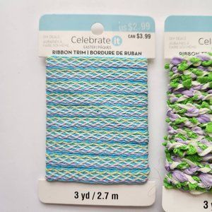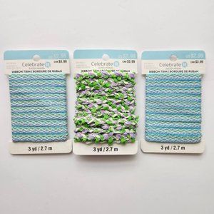 3 Packs Celebrate It Ribbon Trim 3 Yards Each Blue/Green Spring Easter Colors