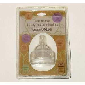 3 Packs of 2 OrganicKidz Wide Mouth Baby Bottle Nipples, Fast Flow, 6+ Months
