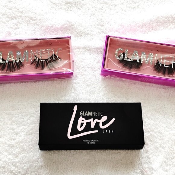 3 brand new pairs of Glamnetic eye lashes. All different. 1 is Love lashes, 1 is Viral and the last is the Va Va Voom lashes. Tey are all in their original packaging and boxes and are sealed.