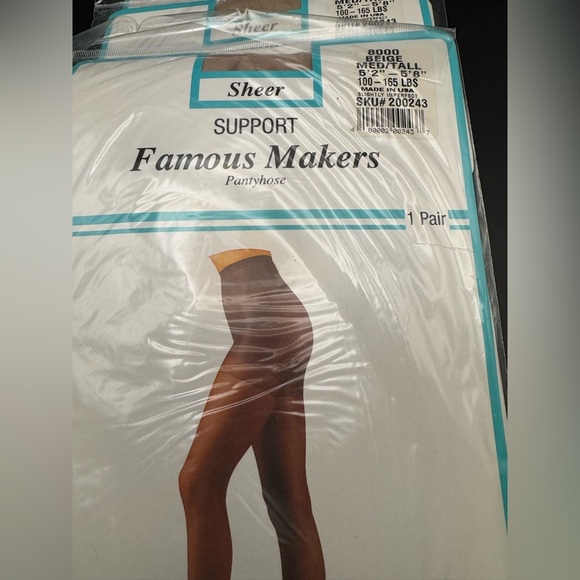 3 Pair SHEER FAMOUS MAKER Beige PANTYHOSE (Med-TALL 5' 2"-5'8”) 100- 1651bs