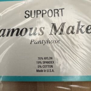 These Sheer Famous Maker Beige Pantyhose are a glamorous addition to any woman's wardrobe. Made with 76% Nylon, 19% Spandex, and 5% Cotton, these pantyhose provide support and comfort. The tall size fits women between 5'2" and 5'8", while the sheer opacity makes them perfect for all seasons and occasions from everyday wear to formal events. Hand wash only to maintain their quality, these pantyhose are proudly made in the United States with a 90s theme. Add a touch of elegance to your outfit with these stylish and versatile pantyhose.