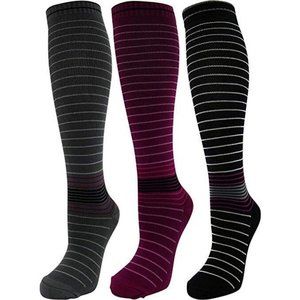 COMFORTABLE GRADUATED COMPRESSION SOCKS - Swell Relief Premium Quality 3 Pack Moderate/Medium Graduated Compression 15-20 mmHg for Men and Women. Enhanced Performance Design for Support, and Comfort. Fits men's shoe size 4-7.5 and Women's shoe size 5-8.5. Multi Color 3 Pair Set.