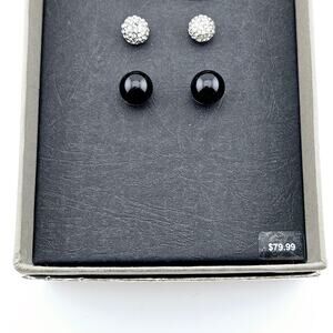 3 Pair Stud Earrings Gift Set Black And Silver Crystal Sparkle Simple Posts