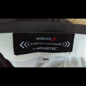 These are 100% cotton and are brand new. Although they are marked 36x34, these are actually more of a 35x34 size. I purchased these, but by the time my husband went to use them, the return period for Aramark had expired. Even though they are suppose to be 36" waist, and are only 35", Aramark would not exchange or refund them. Here are the features from the Aramark website: