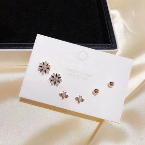 [3 Pairs] 925 Sterling Silver Diamond Earrings E