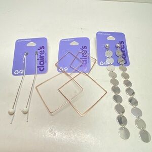 (3) Pairs Claire’s Silver and Gold Long Dangle Pierced Earrings #28.