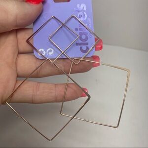 - (1) pair of gold-tone thin intertwined rectangular earrings. Approx. 4” long.
