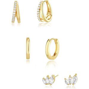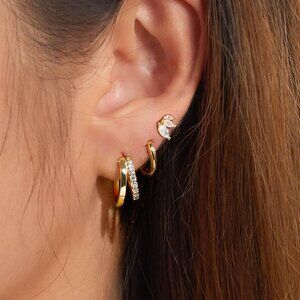 3 Pairs Earrings for Women Trendy: The earring set features 3 different pairs of earrings: cz gold hoops, gold hoop and cz stud earrings. Best part? Each piece is crafted from luxe 14K gold plated that you can wear it everyday! Perfect triplet for anyone looking for something dainty yet classic.