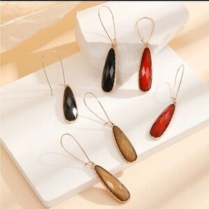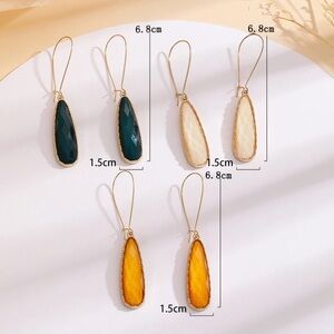 3 Pairs Gold Geometric Gemstone Drop Earrings