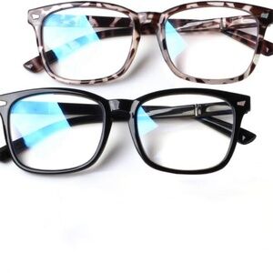 ***Henotin Blue Light Blocking Readers. "Square Nerd Glasses." 1 pair is Dark Blue and brand new. The other 2 may have been worn, but no signs that they have--Black & Clear Cheetah pattern & Black & Brown Cheetah pattern. ***