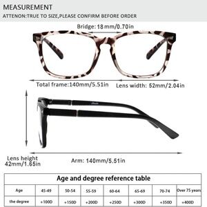 HIGH QUALITY MATERIAL - polycarbonate lenses reduce chromatic aberrations, restore true colors,lenses with accurate degrees, Temple with firm and flexible,excellent toughness, lightweight, and making these reading glasses not easy to be scratched.To ease your close reading pressure.