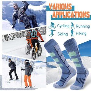 PROTECTION FOR FEET: Thicken warm fuzzy inner can warm up your feet for a long time in winter and provide you comfortable feeling, Full cushioning of these Merino wool ski socks has better shock absorption and reduces foot soreness. Engineered heel and seamless toe do not grind your feet and avoid blisters, providing the most comprehensive protection for your feet.