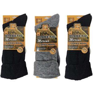 3 Pairs Merino Lamb Wool Diabetic Socks, Men Women, Warm Winter Sock Size 10-13