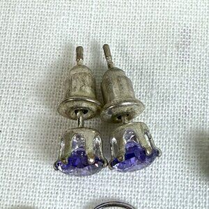Pair 3: Small purple rhinestone/simulated amethyst stud earrings (silver-tone backs)