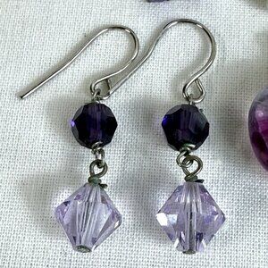 Pair 2: Faceted purple and lavender crystal bead dangle earrings (silver-tone hooks)