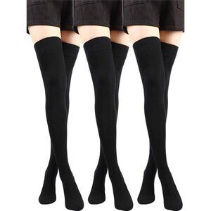 3 Pairs Thigh High Socks Cotton Over Knee Socks Knit Long Boot Stocking, Black