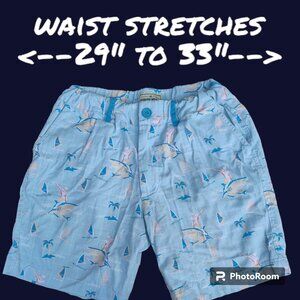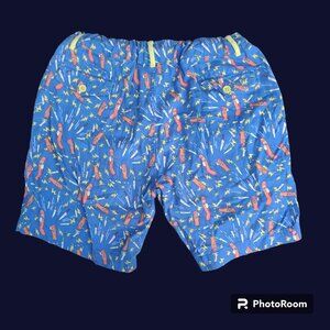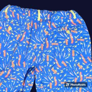 Three pairs in one purchase! Funky fun shorts for golfing or just feeling eccentric. Size small with a 29" elastic waist stretching to about 33", see all measurements in photos. Includes the infamous 2016 "Sausage Party", Shark Chick, and an Irish Rainbow. I ship same or next day and also offer a priority mail shipping option if you just can't wait much longer!