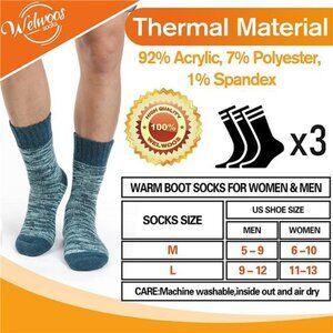 -【Thermal Material】Welwoos winter heated socks are made of 92% Acrylic, 7% Polyester, and 1% Spandex, which have thick layers, a warm brush, comfortable touching, and no itching issues. There are 3 pairs of warm winter socks in one pack for men & women.