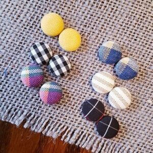 Get 3 pairs of SURPRISE button stud earrings made from upcycled fabric.