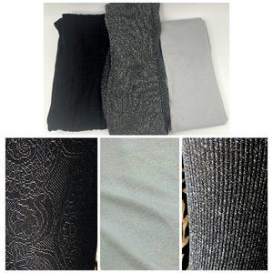 3 Pairs Womens Tights Black Fishnet Small Gray Opaque Metallic Footless Hose