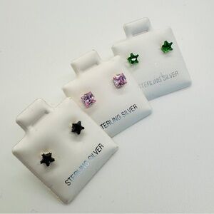 Add a touch of sparkle with this sterling silver star earrings. Three set bundle featuring black, pink, and green stars, these earrings are perfect for any occasion.