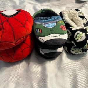 3 Pairs ofKids Character Slippers!! Spider-Man, Buzz Lightyear & Starwars. 9-11