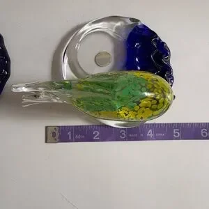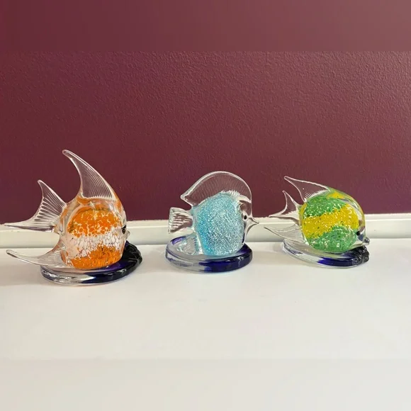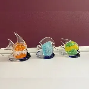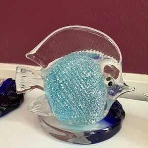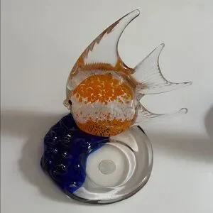3 PartyLite Riviera Art Glass Angel Fish Tealight Candle Holder Orange Blue