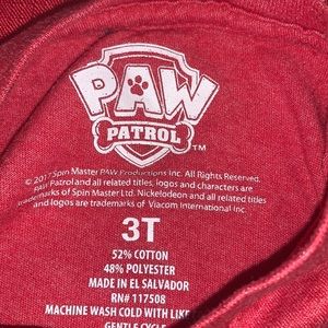 Three Paw Patrol Shirts Red and Grey in 3T and one grey in 4T. All in Good Pre-Owned Condition. All say Pawfect and then say other things with it. Super Cute and Comfy, great for your Paw Patrol lover.l