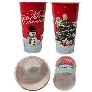 3 Pc. Christmas-Themed Large Gift Bag 1 Pair Socks Plastic Tumbler Gift Set NEW