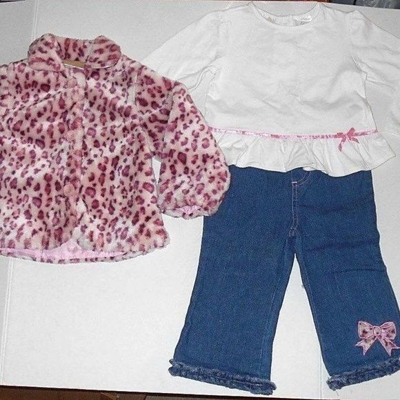 Rare Beautifully Designed Fashionable Pretty Girl Beluga New York 3 Pc Pink Faux Fur Leopard Print Coat/Jacket Top Blue Jeans Pants Set Sz 2T. It is a must have. Will make a great gift. Very hard to find. Thank you for looking, have a great day.