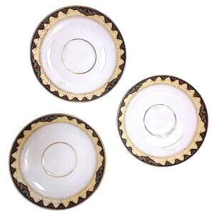 3 Pc Johann Haviland Bavaria Exotic Floral Designer Gold Rim Saucers Plates.