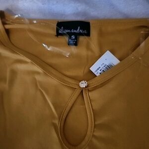 ALISON ANDREWS size small short sleeve shirt with jeweled button and key hole closure, super stretchy material NWT. originally 9.99