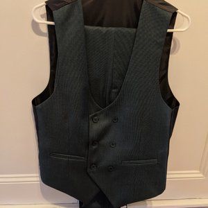 Never worn (except to try on) 3 pc suit tags still attached! My fiance and I purchased this suit to be worn at our wedding, however he changed his mind for something different. This suit is in excellent quality and even has un-hemmed pant length so you can take it to a tailor and have it custom fit for you. The color is a green with black looks more teal/green in photos. Size 36 Regular, comes with pants, vest and jacket.