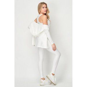 3 Pcs Activewear Yoga Set Gym Workout Textured Hoodie Top and Leggings Outfit