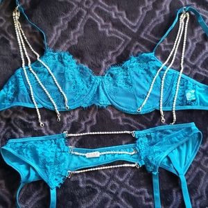 Reposhing this item I purchased from @aviatortwin. Never worn. Only tried on the bra but it was too small. I'm a 36D and the bralette would better suit a B or C cup. Beautiful set but unfortunately too small. All purchases go towrds paying off my medical debts. Thanks for stopping by! Happy poshing! Stay safe.