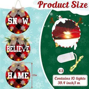 -Appropriate Size: the front door Christmas sign is approx. 30 cm/ 11.81 inches in diameter, the light strings are approx. 100 cm/ 3.28 ft, appropriate in size for you to decorate and make some creative matches on Christmas, bringing much joy for your families and guests