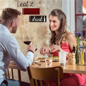🧿What you get: the package comes with 3 pieces of wood home signs, one decorated with eat and a pair of spoons and forks, one decorated with drink and a bottle of red wine and a goblet, and one decorated with love and a pair of lovers' cups; Each piece is tied with twine on the left and is carefully designed