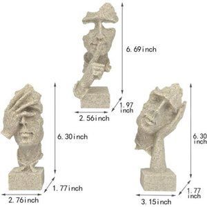 3 Pcs Thinker Statue, Silence is Gold Abstract Art Figurine, No Hear No See