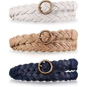 3 Pcs Women's Braided Leather Belt Skinny Woven Braided Belt