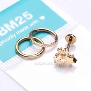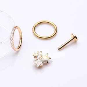3 Pcs of Assorted Everyday Golden Sparkle Stars Stud x Clicker Package