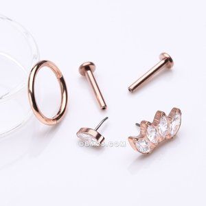 3 Pcs of Assorted Titanium Rose Gold Brilliant Marquise Stud x Clicker Package