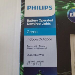 3 Philips Dewdrop LED 30 ct Wire Light 2 Green 1 Blue Battery Operated Timer NEW