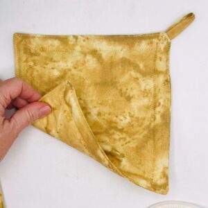 Delightful print for your kitchen! Square Potholder and Finger Potholder are 100% cotton with Wrap n Zap and Insul-Brite batting inside. These are a sturdy, attractive addition to your kitchen. Potholders measure approximately 7x7 square. The finger hotpads measure 8x5. Because each one is carefully handmade, measurements may vary.