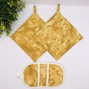 3 Piece Baking Set: 1 Finger Hotpads and 2 Square Potholders, Neutral Tans